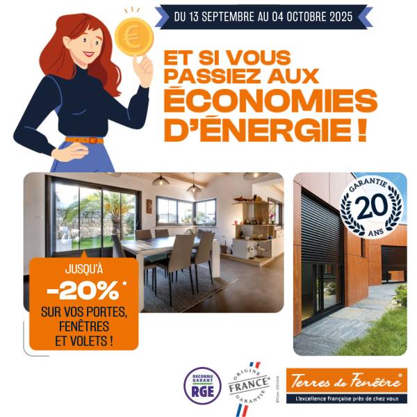 Du 13 septembre au 4 octobre, profitez de -20 % sur nos fenêtres, portes d’entrée et volets roulants* ?