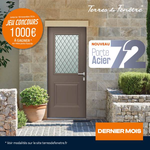 Le premier tirage a déjà eu lieu, mais ce n'est pas fini ! ? Vous avez encore jusqu'au 18 novembre 2024 pour tenter votre chance et gagner 1 000€ sur votre nouvelle porte d'entrée Acier 72 mm.